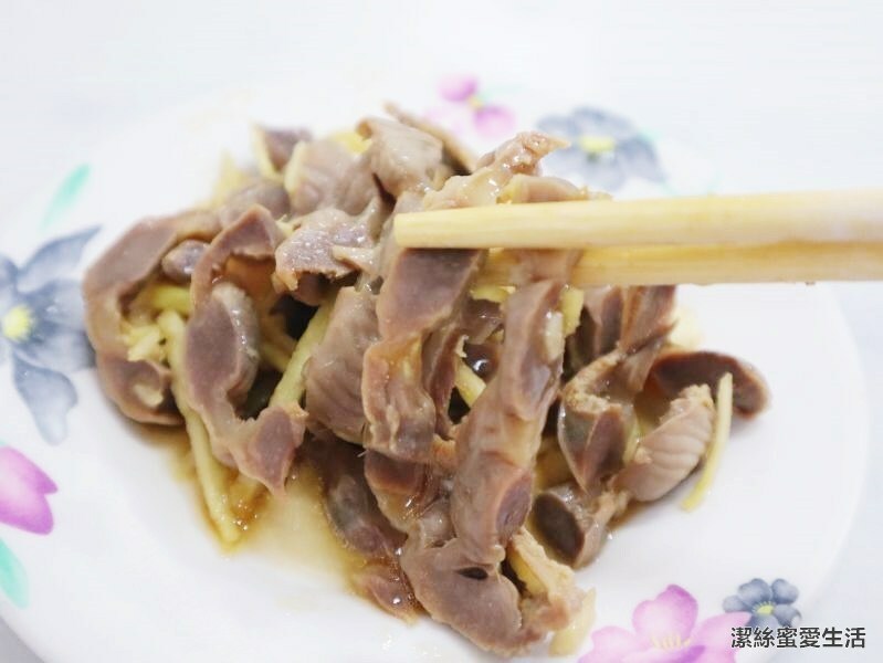 雞胗是自己到小菜櫥裡取的,這道我個人蠻喜歡的耶!雞胗不會過於乾硬,拌上薑絲很清爽,好吃。