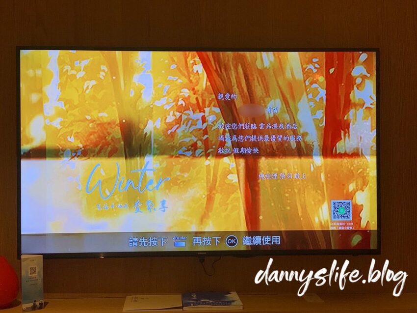 60吋的大螢幕電視,第一次打開還會有訂房的名字,對旅客非常用心,每一個小細節都讓客人感受得到。