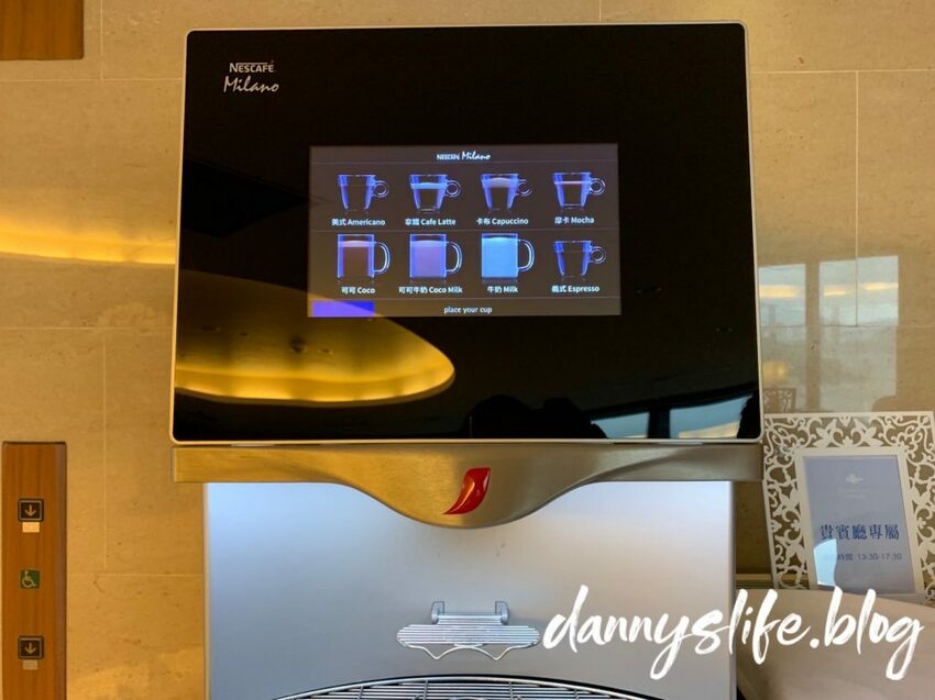 這次住的房號是1026,在十樓,電梯一打開的空間是貴賓廳,每天的13:30到17:30會有管家在這邊,有什麼需要都可以直接來跟他們說,除此之外,也提供小零食和咖啡機給住在這層樓的旅客。