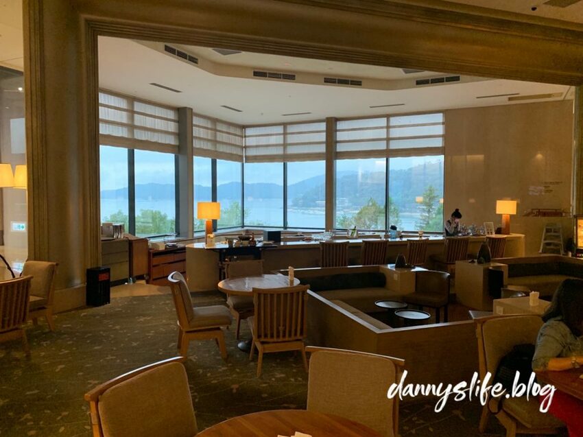 大廳的咖啡廳,可以在這邊一邊看著日月潭的美景,一邊喝著咖啡,真的非常幸福。
