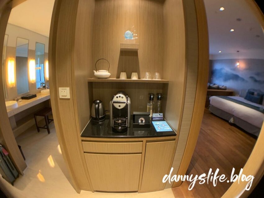 另外因為講求環保的關係,房間內不會有瓶裝水,房間內會提供玻璃水壺,要裝開水、氣泡水也可以在這邊裝唷!