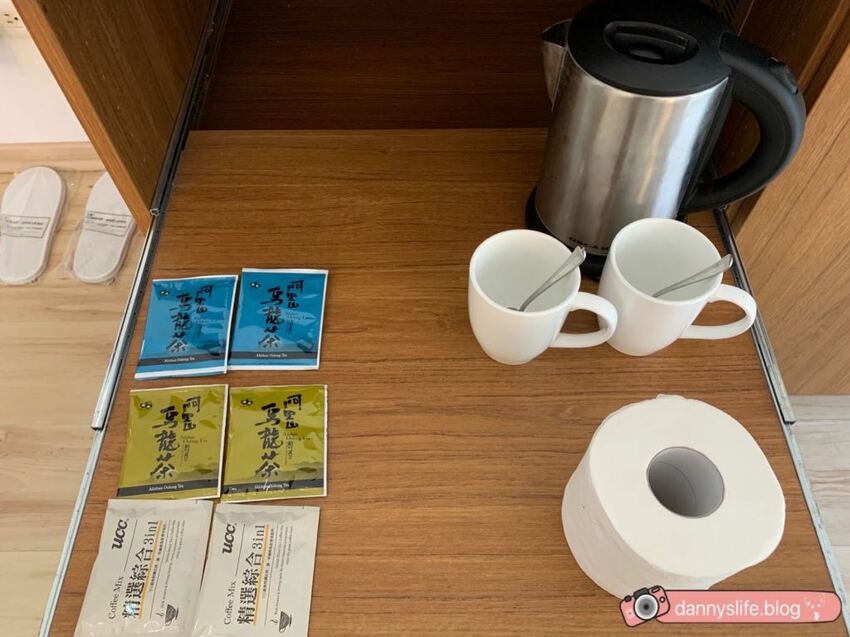 洗手台有提供肥皂、刷牙杯、毛巾等。