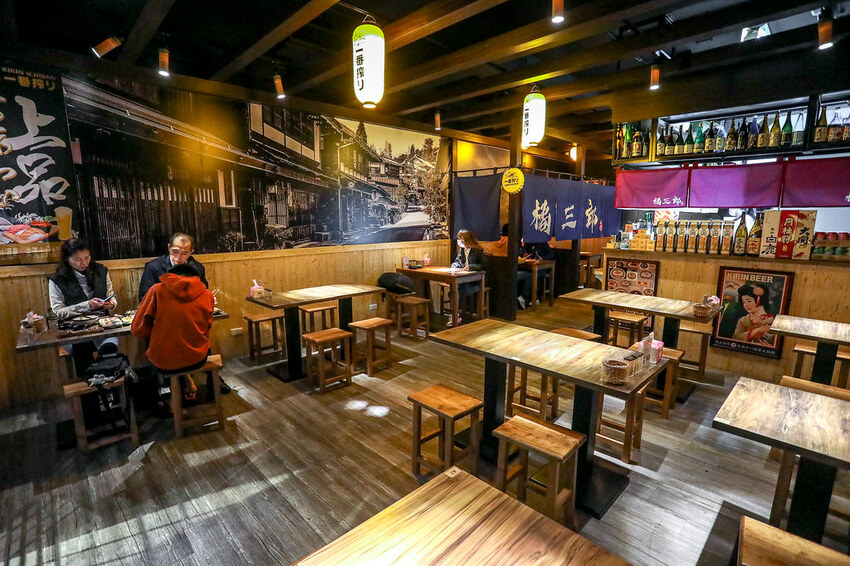 走進店內,輕快旋律伴隨耳邊,寬敞舒適座位營造美好用餐氛圍,後面還有兩桌半隱密似包廂的座位,牆上的圖片、擺飾酒瓶加上暖色系燈光,彷彿到了日本居酒屋。