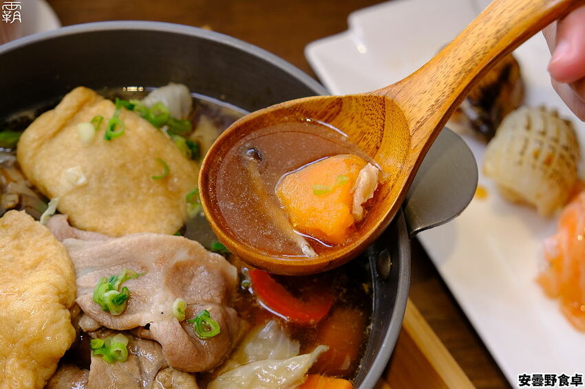 關東風的壽喜鍋內有加入一些清酒提味,有調整過可以當湯喝不會過鹹,甜味也不是那種很膩口的甜,而是來自湯頭的昆布、蘋果甜味。