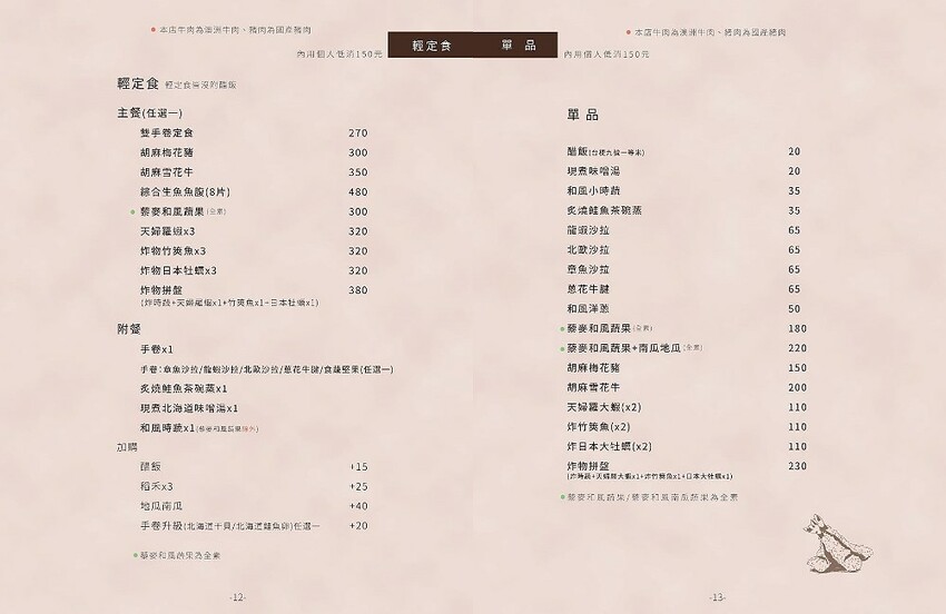 輕定食則是將幾項輕主食搭配手卷、茶碗蒸、味噌湯及和風食蔬規劃成定食組合,餐點內少了澱粉類主食頗受女性青睞。