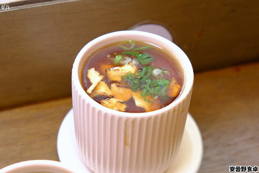 剛剛有提到店內的味噌湯也是現煮的,本身是以白味噌為基底搭配豆腐、日本海帶芽,喝起來甜味明顯,還加入了蘋果泥讓湯喝起來多了一股蘋果甜香味,很特別阿!