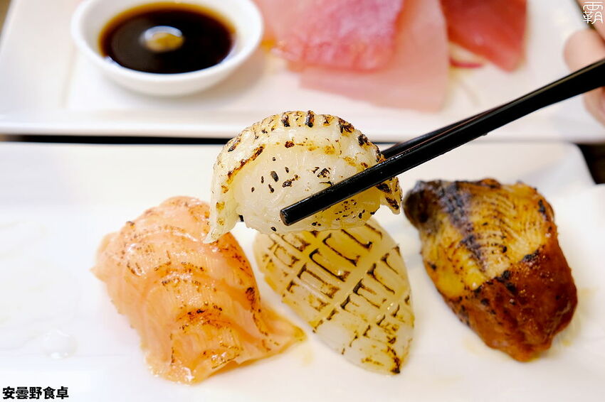 不論是點散壽司定食、鍋物,如果想再吃豐盛一點,也可以考慮單店店內的握壽司,特別是以下這幾款炙燒握壽司都是店內很受歡迎的品項。