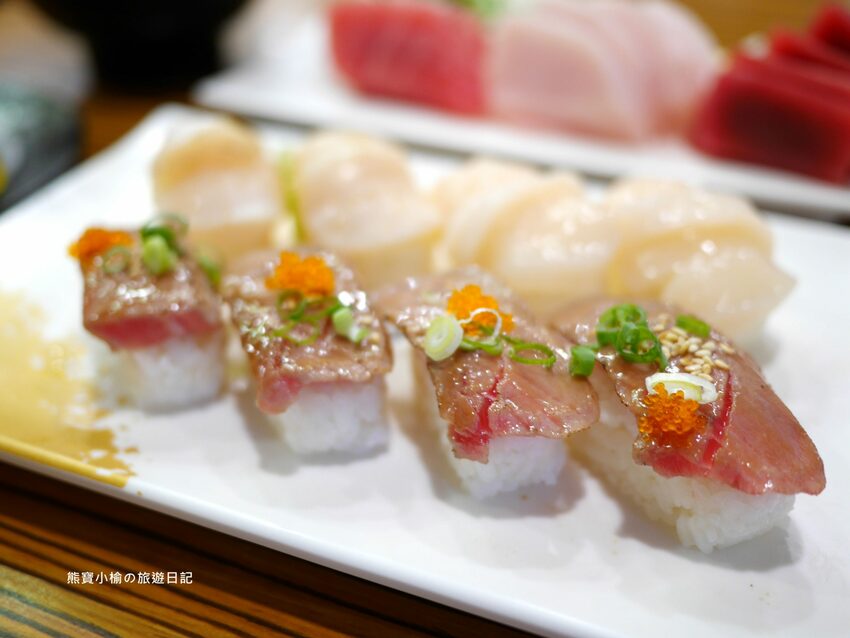 ↓炙燒的干貝、鮪魚都多了一種燒烤香氣,吃起來更多一種風味。