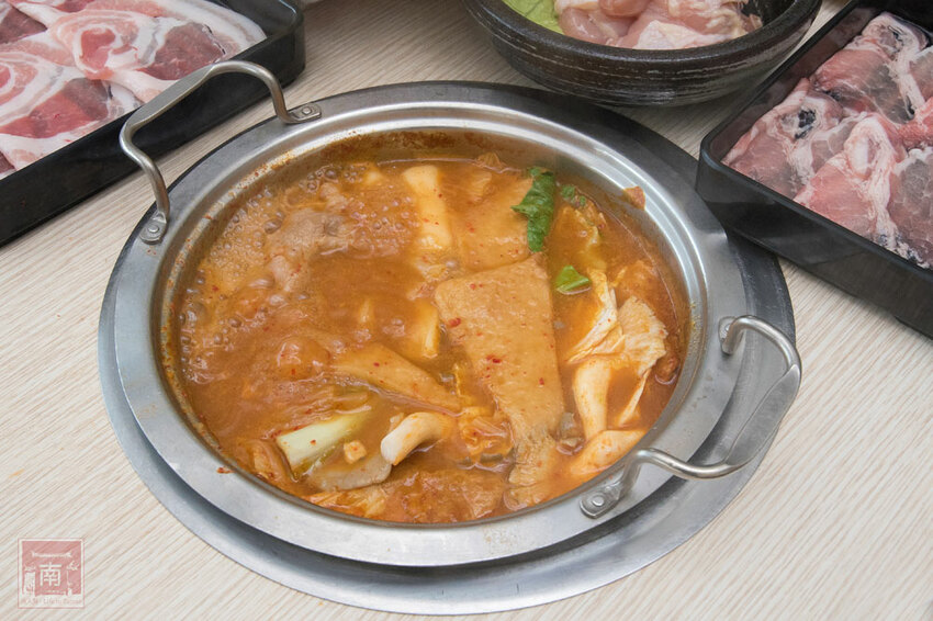 原本以為吃到飽的湯頭不會特別的講究,但這個韓式湯頭倒滿好喝的,湯頭濃郁,因為又附了一包韓國麵,煮起來QQ的很好吃,而鍋底裏頭原本就加了起司片、年糕和黑輪片。