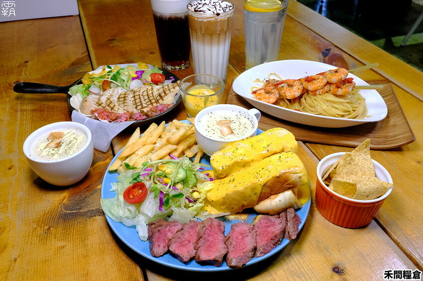 「禾間糧倉」以豐盛的早午餐搭配店內極佳的用餐氣氛在台中早午餐圈內獲得好評,如果是女生們聚餐,小鐵鍋餅早午餐盤是首選,嫩雞胸不會太油膩,份量適中又均衡。男生可以點火山熔岩起司炙烤牛排,有肉有菜加上麵包,吃下來比較有飽足感,或是想嘗試看看中式口味的花雕燒酒蝦串串義大利麵,義大利麵結合中式料理手法,帶有創意風格,也是非常少見特別的口味~