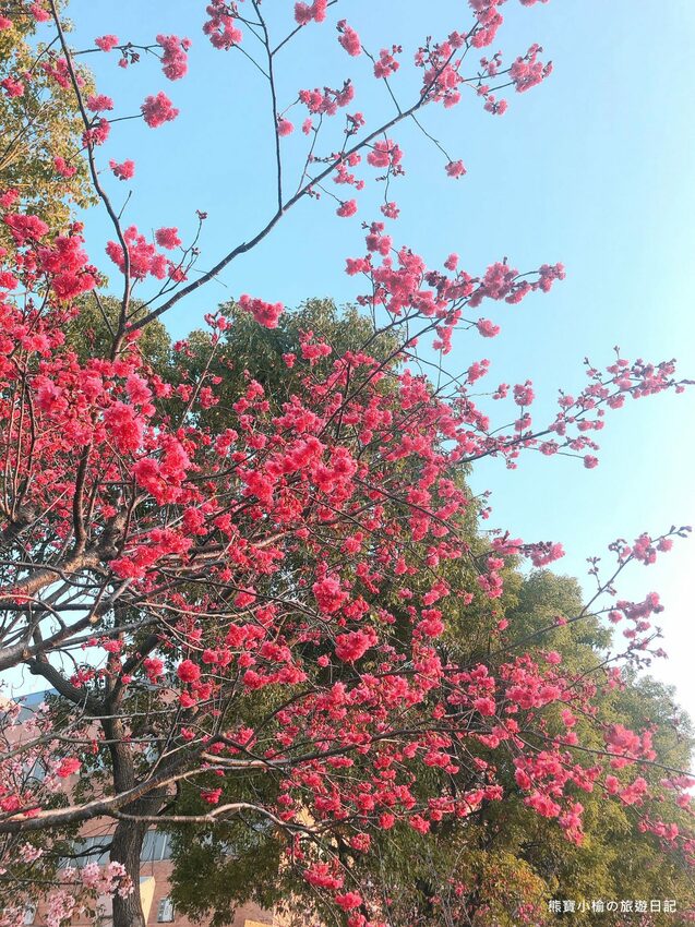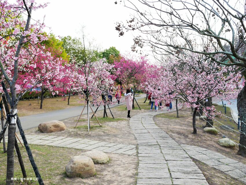 趁著春暖花開美好時光,熊寶小榆也來到台中后里的中科崴立櫻花公園賞櫻啦。
