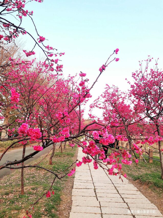 這個公園的櫻花有相當多種,河津櫻、八重櫻和山櫻花都爆炸盛開中!