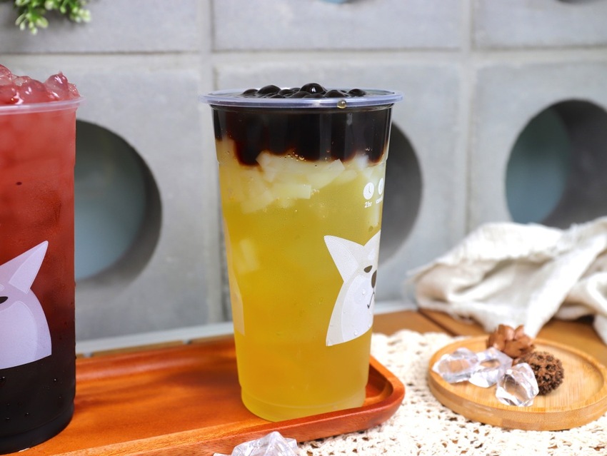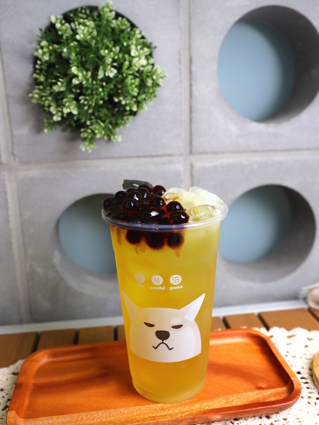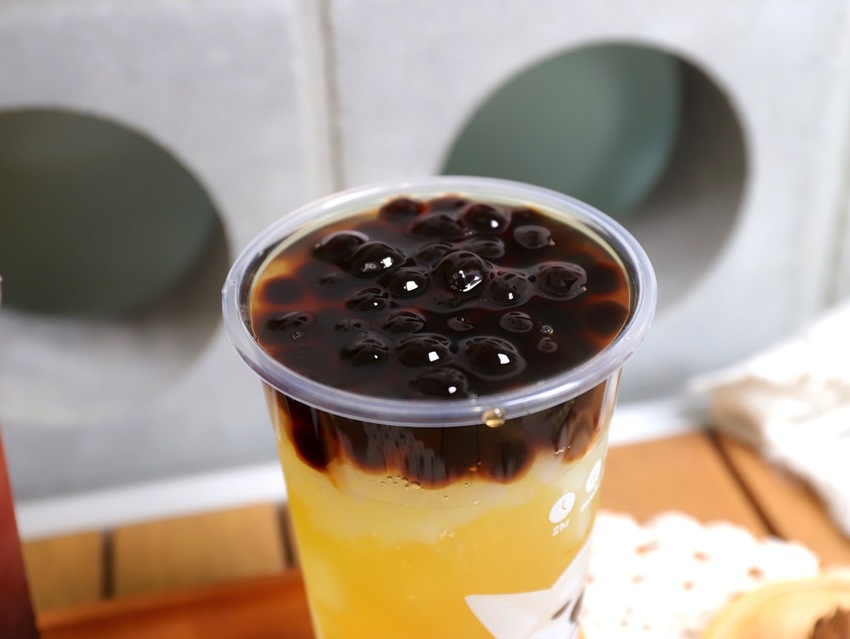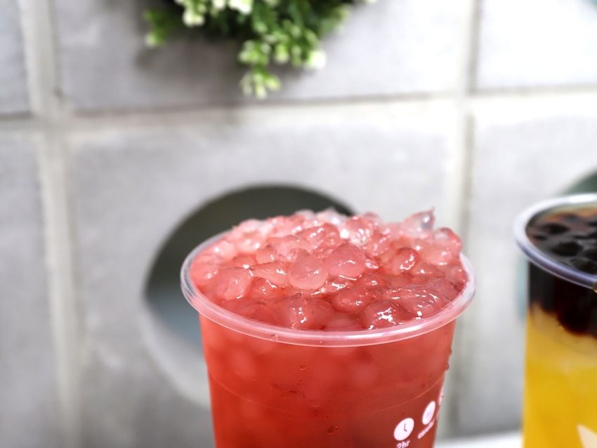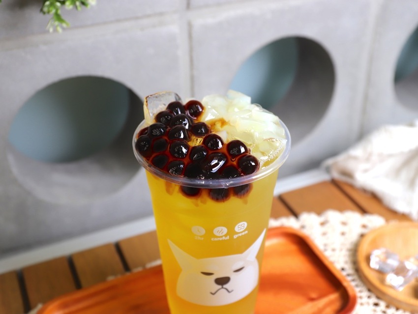 整杯飲料的甜度來自於香甜有嚼勁的椰果&軟Q波霸,如果你平常習慣喝無糖飲料,可以這樣搭配,不會太甜,很不錯!