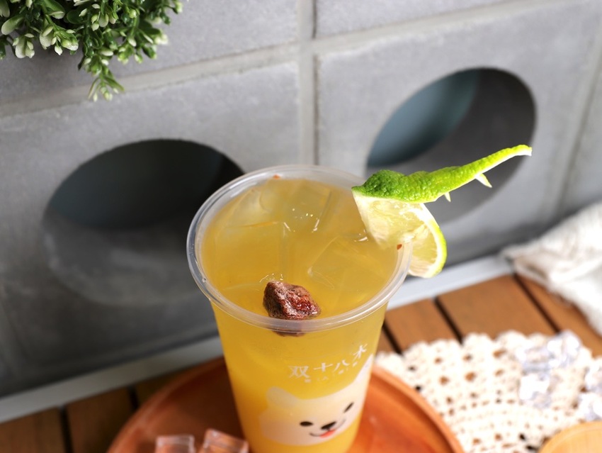 放了一顆酸梅,給人畫龍點睛之妙,柳橙的濃郁香氣之中帶有梅子的酸甜滋味,格外的清爽,有點像是在喝柳橙風味的梅子綠茶!