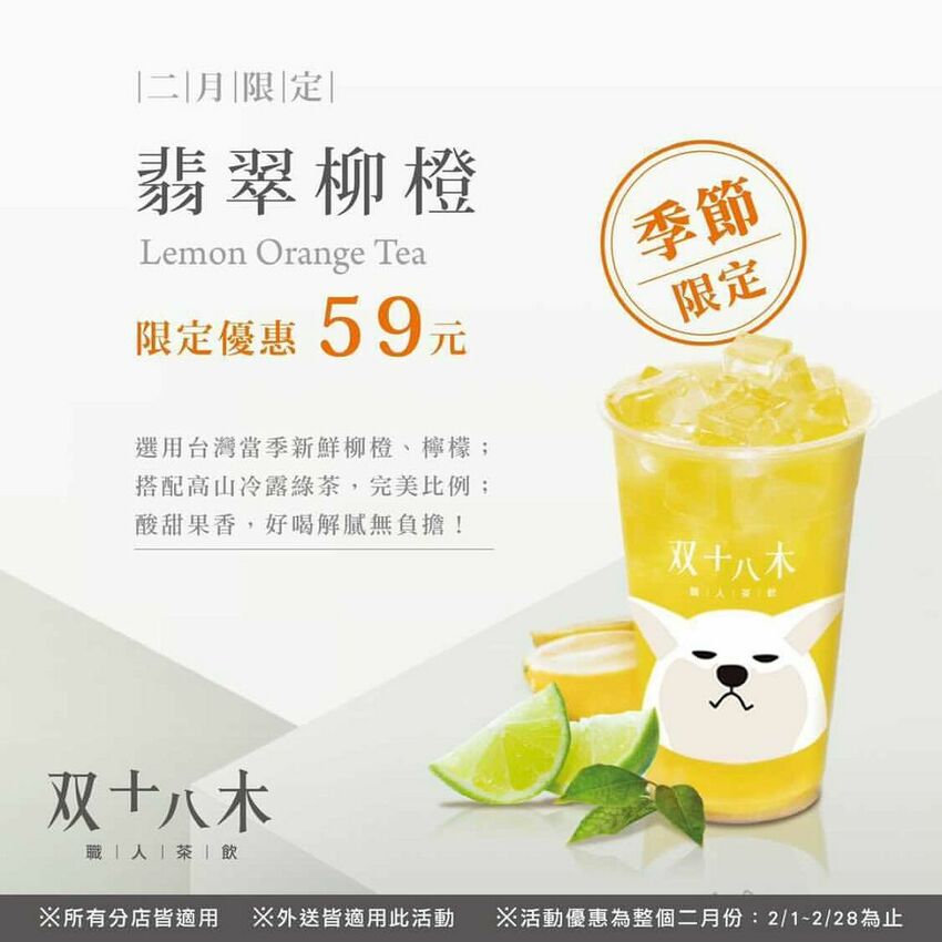2月1日~2月28日:金萱雙Q 特價39元 / 翡翠柳橙 特價59元