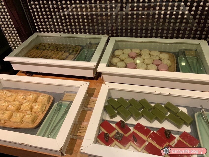 抹茶羊羹、覆盆莓起司蛋糕、馬卡龍等