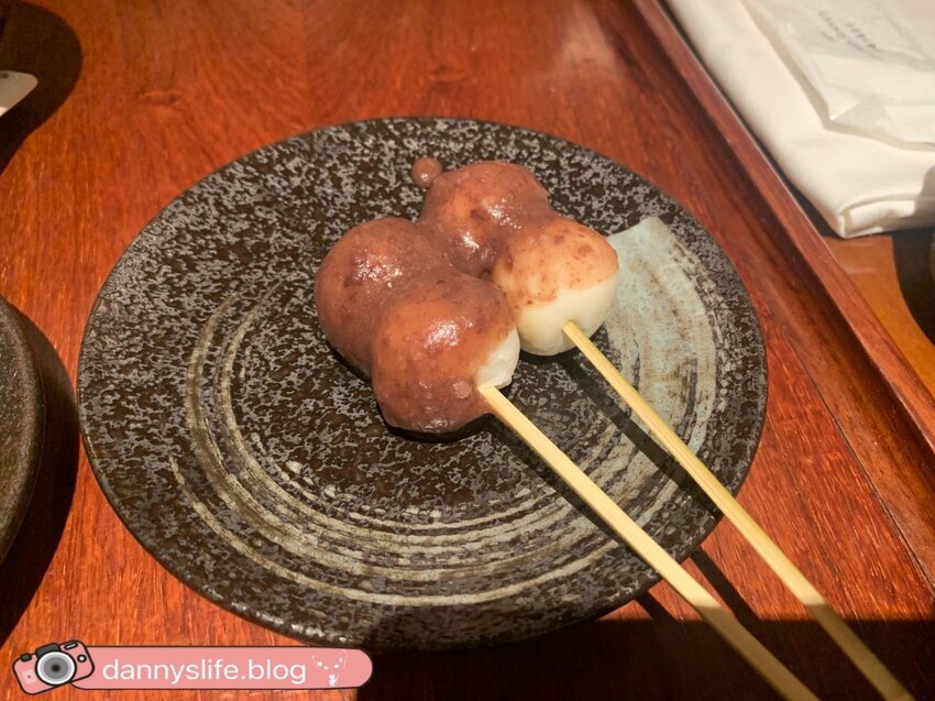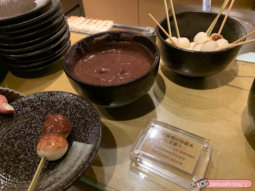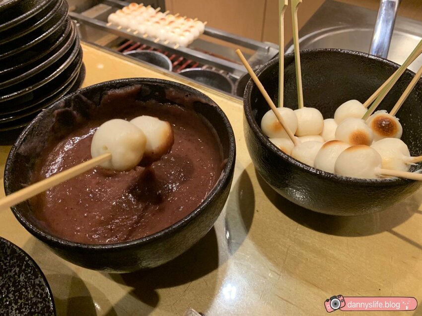 ▼炭烤麻糬佐甜醬油&紅豆醬汁