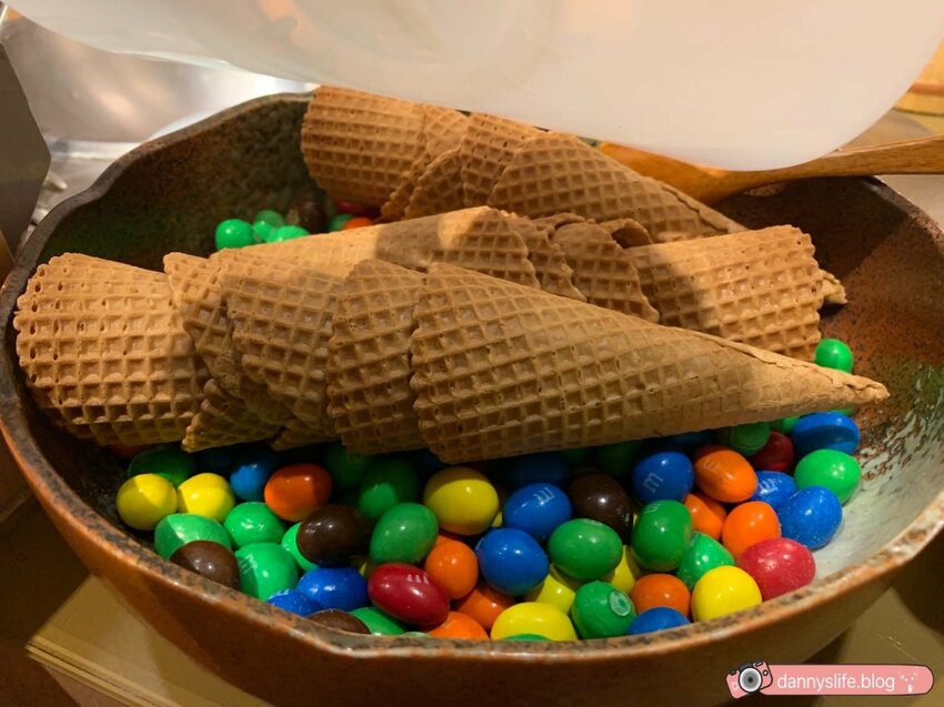 一旁有餅乾桶和M&M’s花生巧克力(?