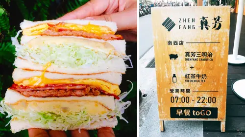 2.真芳三明治,吐司鬆軟可口,肉片醃製入味,口味清爽不油膩。
