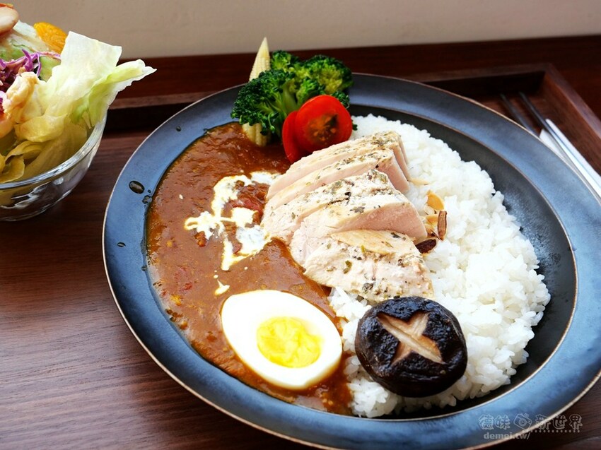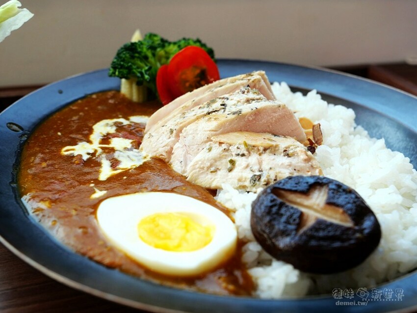 混和洋蔥、蔬果、辛香料所調和成的咖哩滋味溫醇柔順,雞胸肉採舒肥調理自然鮮嫩。