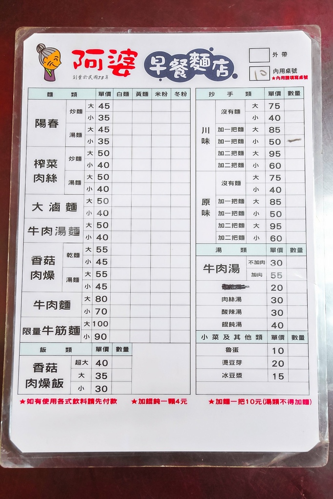 阿婆早餐麵店周一公休,早餐只供應到13:30,所以想要兩種都想吃,一定要13:30前到,切記!!