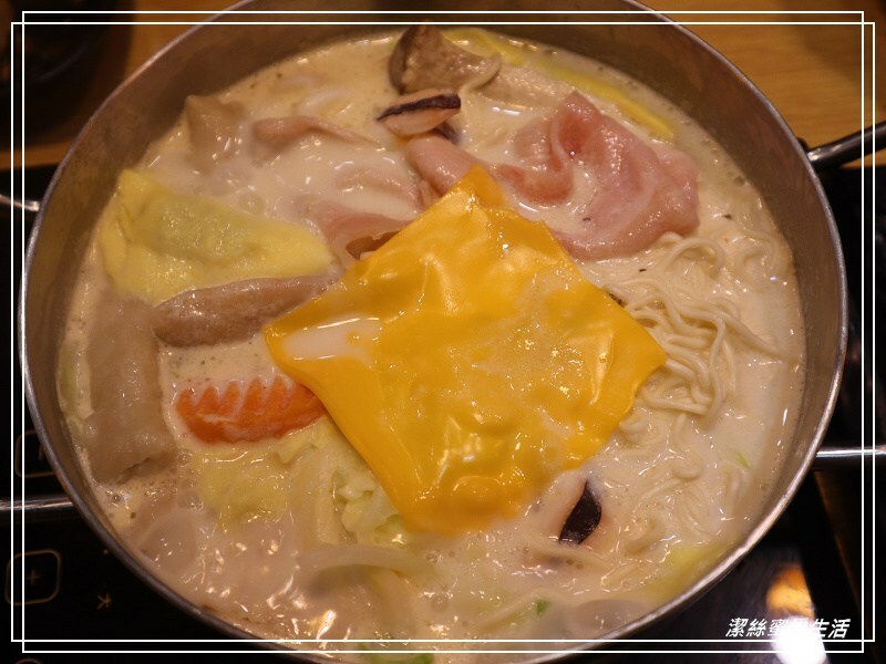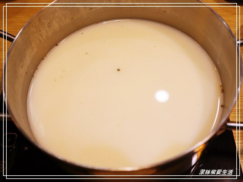 牛奶鍋會附一個起司片,加進去湯裡更加濃稠啦,蜜蜜不是一個愛喝牛奶的人,但這樣的起士牛奶湯頭我很喜歡!