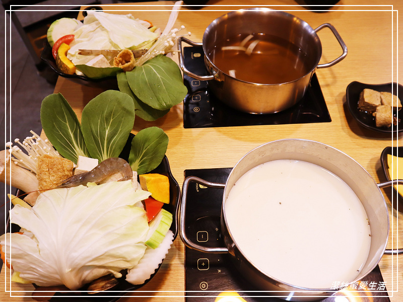 蔬菜盤都是一樣的,放了大量新鮮蔬菜,從根莖類的芋頭/南瓜/紅蘿蔔/山藥等,還有蕃茄/絲瓜,都是能讓湯頭再更美味昇華的食材,我最愛的杏鮑菇很大器地給一大塊,不是只有薄薄一片,超開心💗💗。