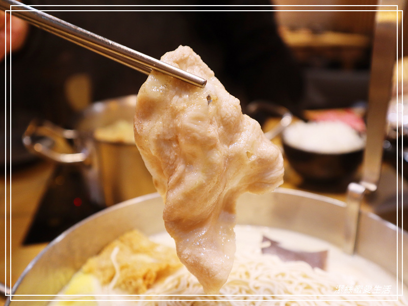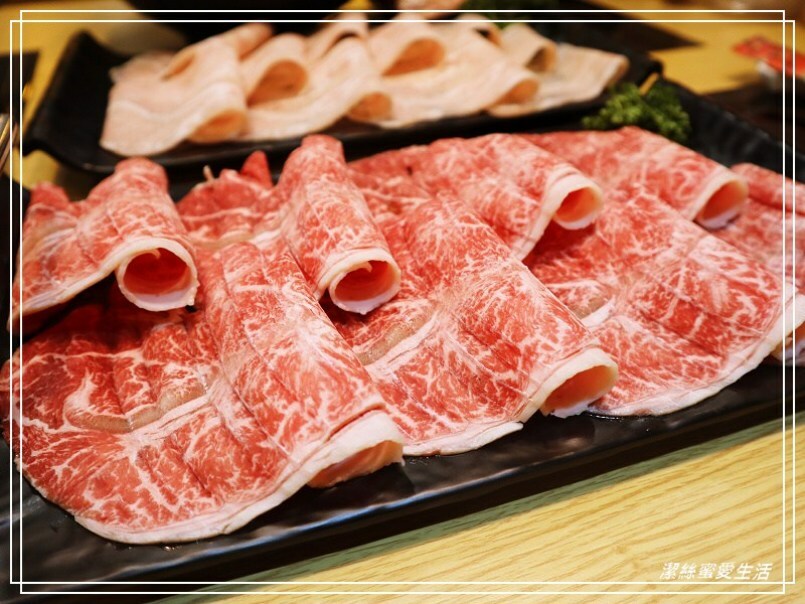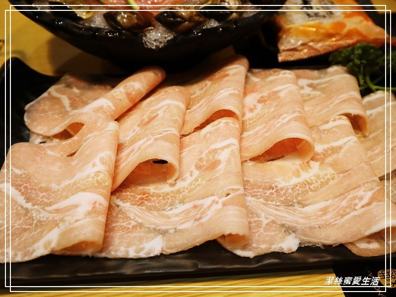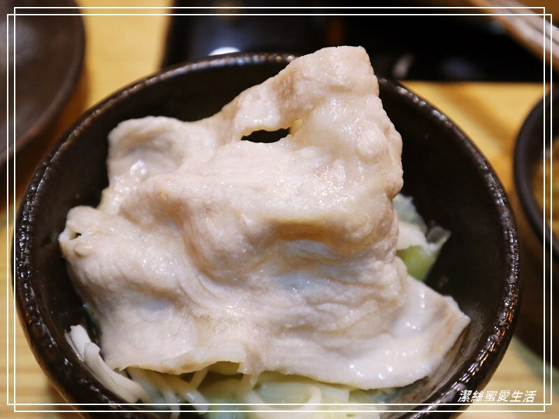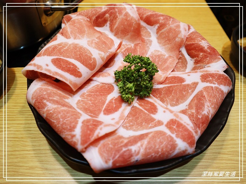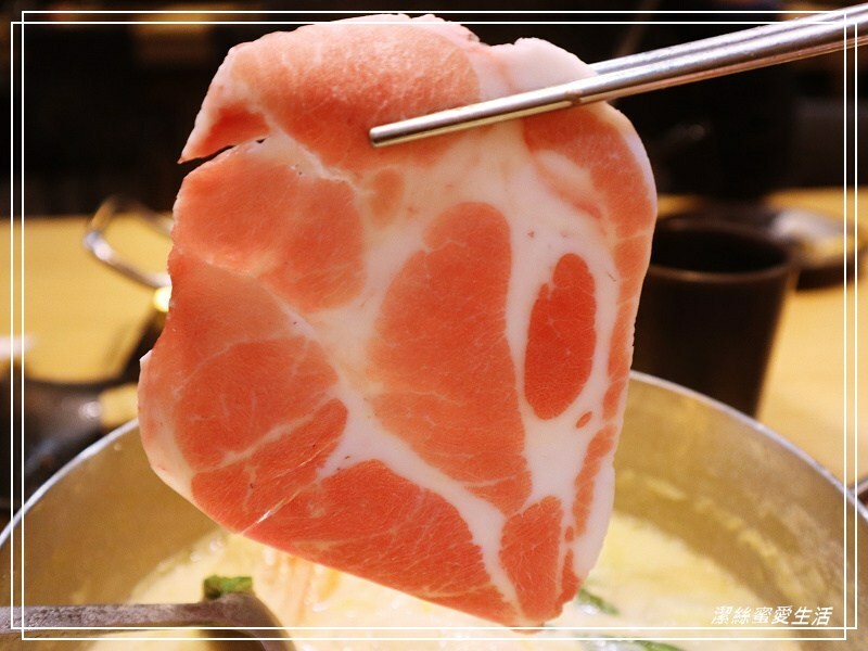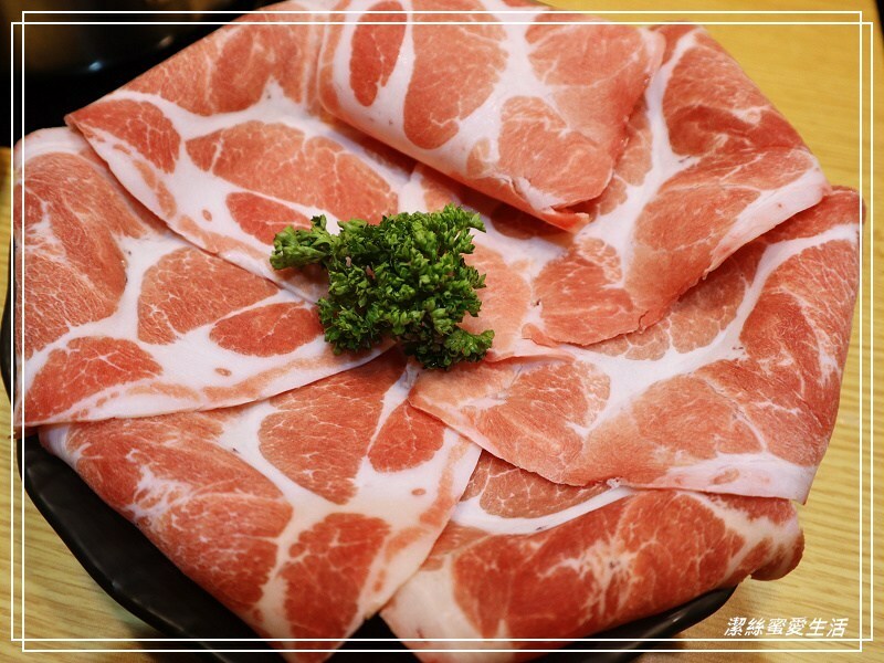 雖然是贈送的肉盤,但品質並沒有打折,看這色澤就知道有多新鮮!同樣是切得大寬片,夾起來超有感,這個梅花豬同樣美味。