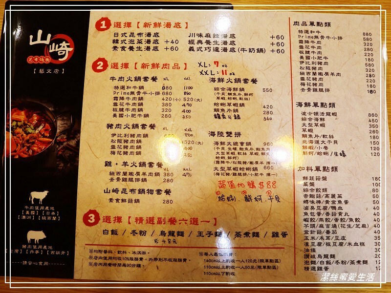 山崎昆布鍋物位在南平路上,聽這店名走的就是日式風,門口立牌寫著鍋物最低280元起,還有明治冰淇淋和飲料任你吃喝——連冰品也日式XD。