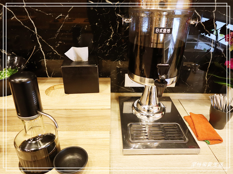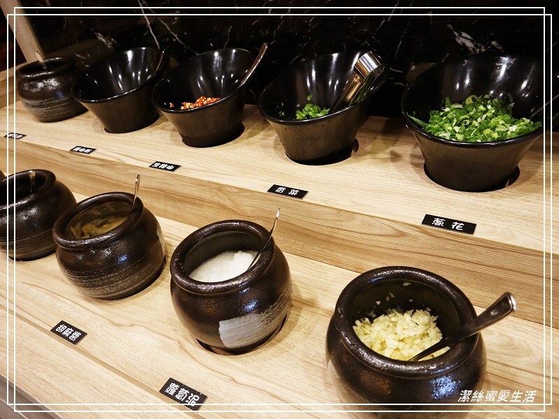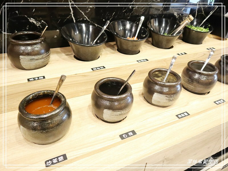 來看看醬料,枱面非常乾淨,沒有滴得湯水渣渣影響觀感,除了基本款的沙茶醬油蔥蒜外,還有日式的柚子醋和蘿蔔泥等。
