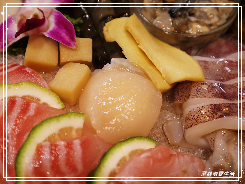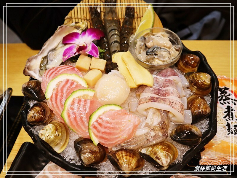 最近很愛點這種海陸鍋,海鮮肉品一次點足到位!海鮮拼盤的組成有干貝/生蠔/鮑魚片/鮑魚角/大草蝦/軟絲/草蝦/鯛魚片/蚵蜊/鮮蚵,滿滿的一大盤送過來超澎湃啊!