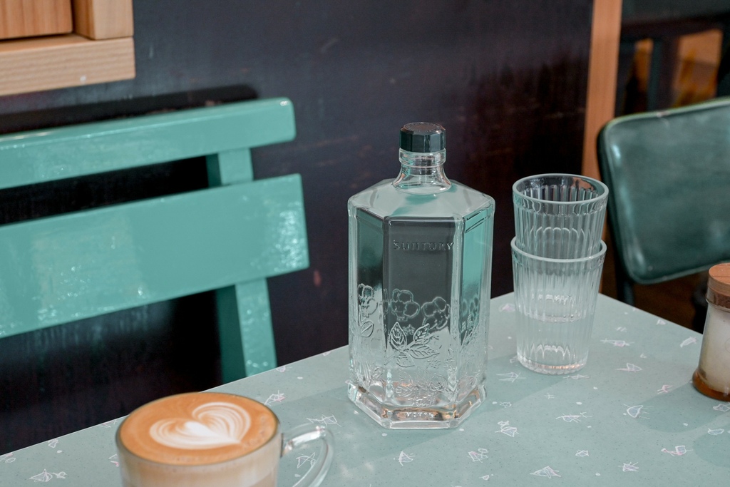 這酒瓶裡裝著白開水,除了佩服店家的創意,也覺得這樣裝著也太美了吧。味道,當然就是純到不行的白開水啊!晚上爸爸才賣酒啦!