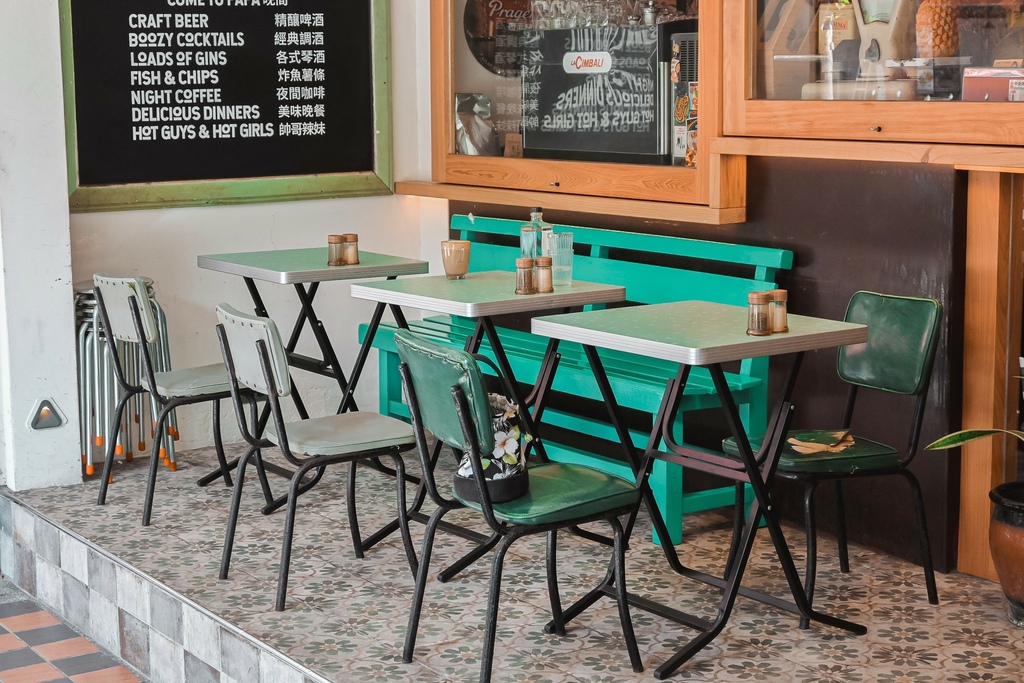 桌椅下的花磁磚、舊到不行的綠椅子等,整個發揮超老派的復古風,此時如果有個外國客人用餐,畫面一定更像是在國外,此時不能出國,只能常常自我安慰用偽出國的想象來滿足自己(泣),凹烏~請問到底什麼時候才能出國啊!我想,這大概是全世界的祈禱吧!