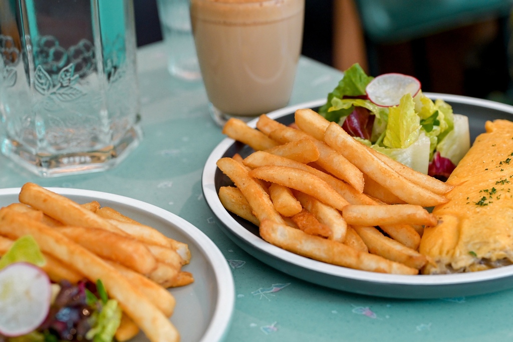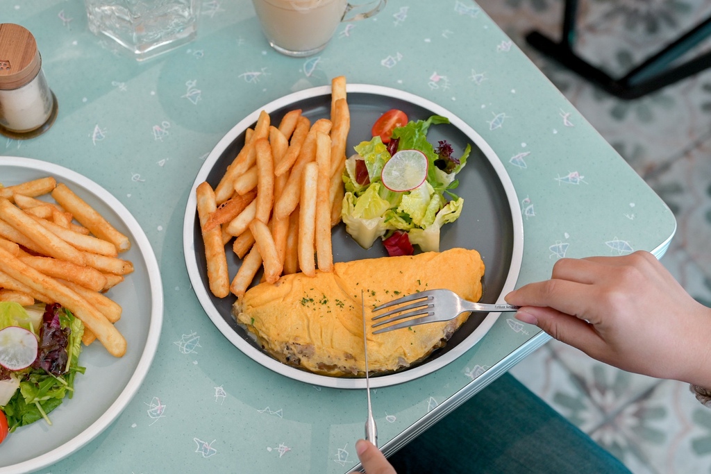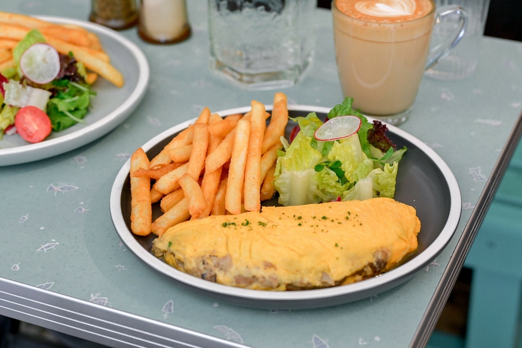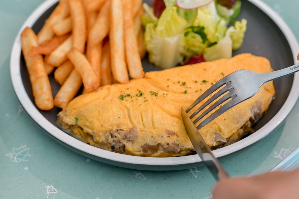 拼盤送上有主角奶油菇菇歐姆蛋,沙拉與薯條,不含飲品,看起來份量不多,不過整套吃下來非常有飽足感。