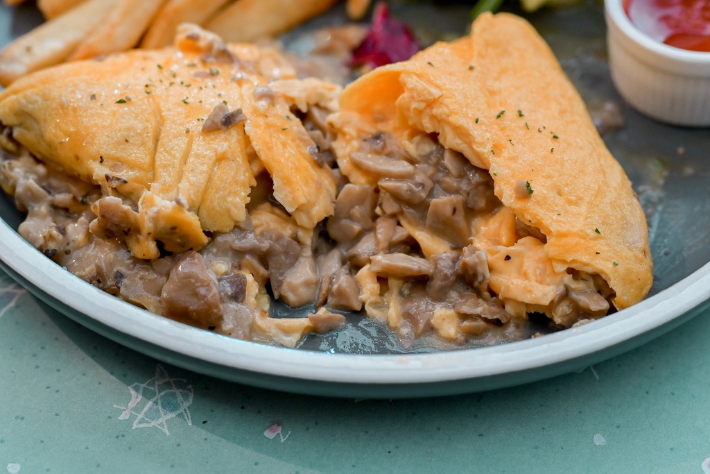 切開歐姆蛋裡是大量的奶油菇菇,菇菇的菌香氣濃厚並帶有奶油香,好啾西!