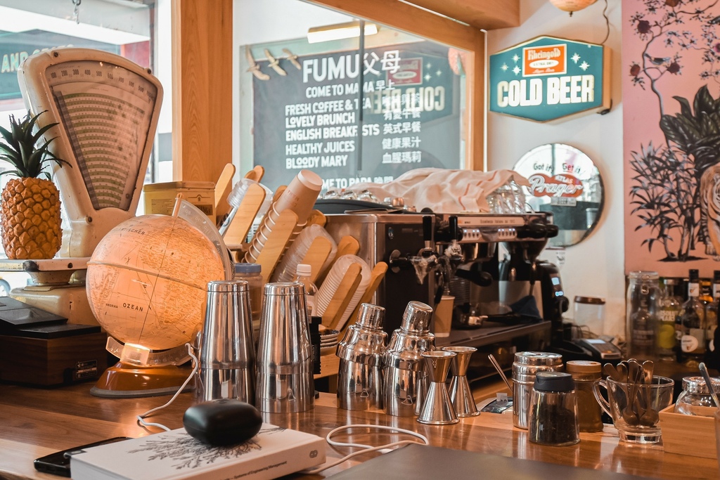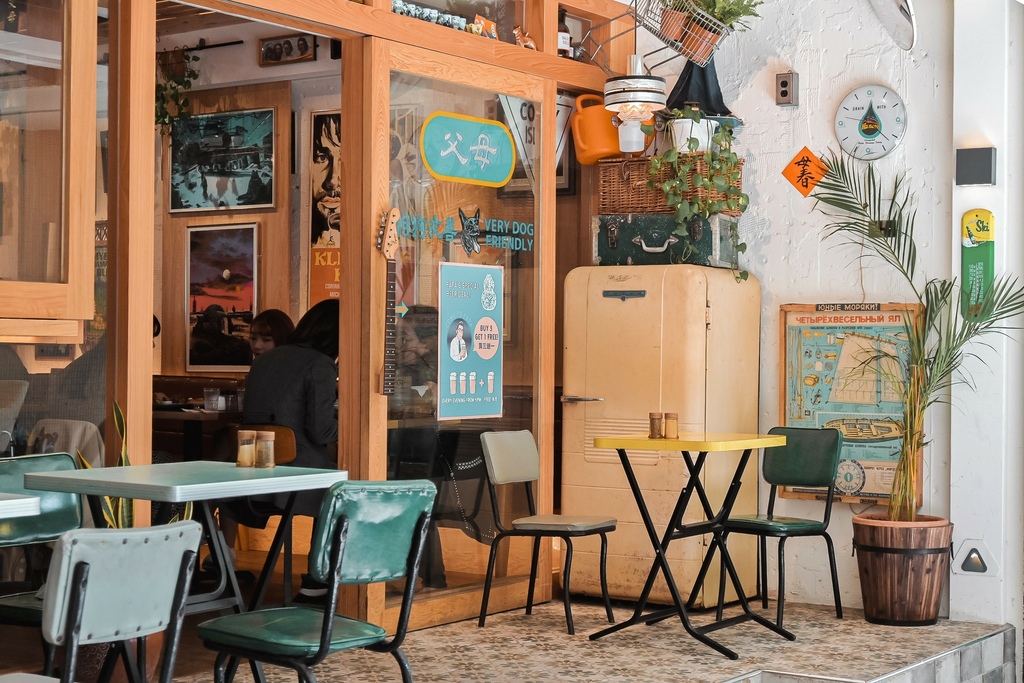 我好愛父母-Fu Mu的環境,從入口處走至店內我就這樣深深的被這復古老派的風格給徹底迷住,不僅僅是色彩鮮明的活潑感,還有許多懷舊可愛的老物件,看了網路的照片發現它們店內都會有小小不一樣的變化,非常好拍!