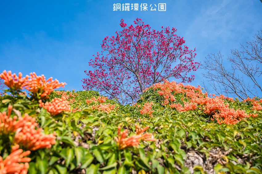 銅鑼環保公園如果過年來的時候會覺得很喜氣,上面有很桃紅的櫻花,下面有橘色的炮仗花,整個就是喜氣到不行,拍了幾張櫻花特寫,很有年味的幾張照片。