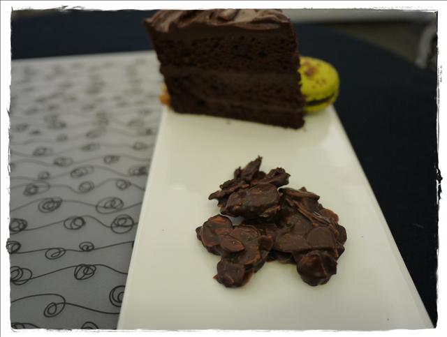 使用焦糖杏仁片與53.5%巧克力製作