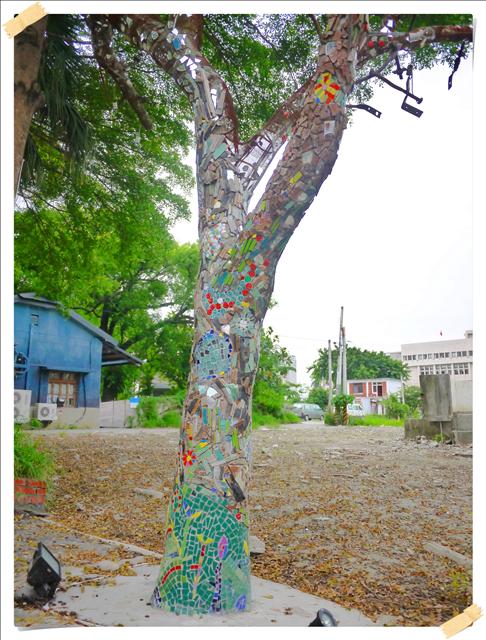 路旁的樹木也做了彩色磁磚的拼貼藝術 感覺這邊就是個很有文藝氣息的地方