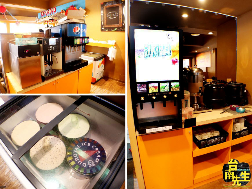 飲料提供蔓越莓汁、水果風味茶、芭樂風味綠茶、冬瓜檸檬風味飲;湯品有濃湯跟松露鮮菇湯(可素食);還有杜老爺冰淇淋都是無限供應