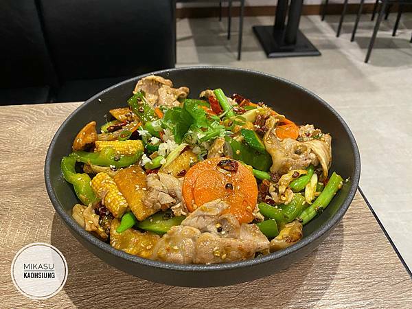 這個乾鍋系列真的必須大推,裡面有滿滿的菜,不怕你營養不均衡,最好吃的是豬肉片、香菇,豬肉軟嫩試中混合著辣椒的香氣,整個就是一鍋辣椒炒蔬菜,但是每個蔬菜都入味到嚇人,我覺得最猛的是紅蘿蔔!!!我超討厭吃紅蘿蔔,但這個紅蘿蔔用辣椒大火下去快炒之後,吃起來竟然完全只剩下紅蘿蔔的甜味跟一點點的辣椒香氣,紅蘿蔔甜到嚇人!完全吃不出紅蘿蔔原始的味道,太鬧了_(:3 」∠ )_