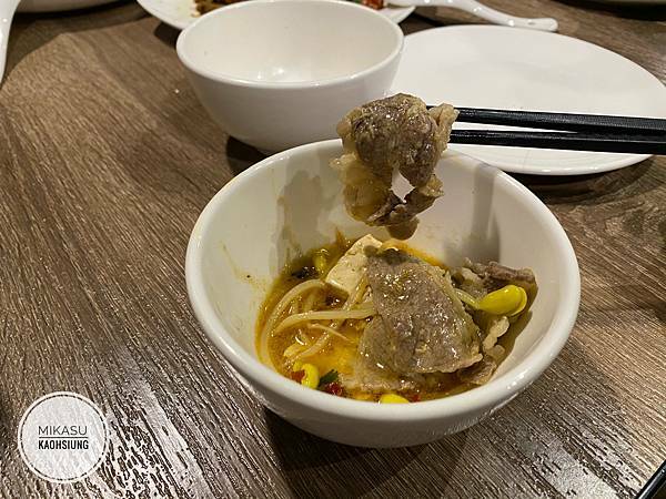 不推大家點牛肉的原因是因為,他的肉片大概就是好事多肉片這樣,我覺得全熟其實口感上面就沒有那麼好,但是這種先煮好的鍋又不可能指定熟度,全熟的情況下變成牛肉片滿老的、甚至有點咬不太斷,所以我自己覺得還好,也許可以改點其他的肉會好一些。