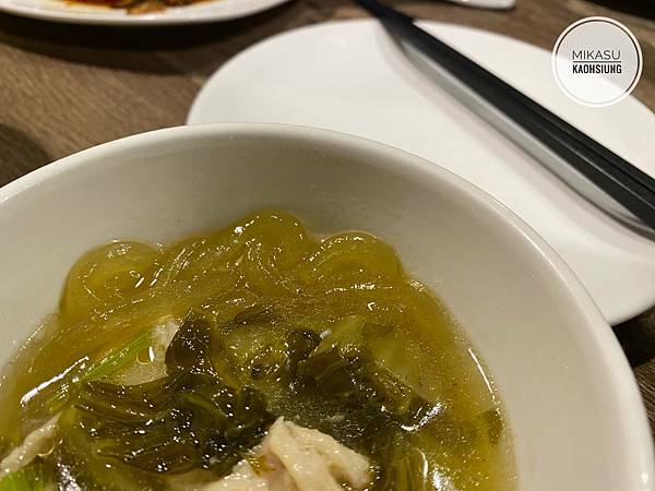這個老罈子酸菜魚裡面配薯粉條就是很像我們吃酸辣粉裡面的那種,很Q、非常Q、Q到會彈,我朋友超級愛,我自己也覺得很不錯,吸了酸菜帶著一點酸酸、辣辣的風味,吃起來口感很棒又很開胃,喜歡的這種口感的人可以大力的加點,不過我覺得裡面本來就很多了。