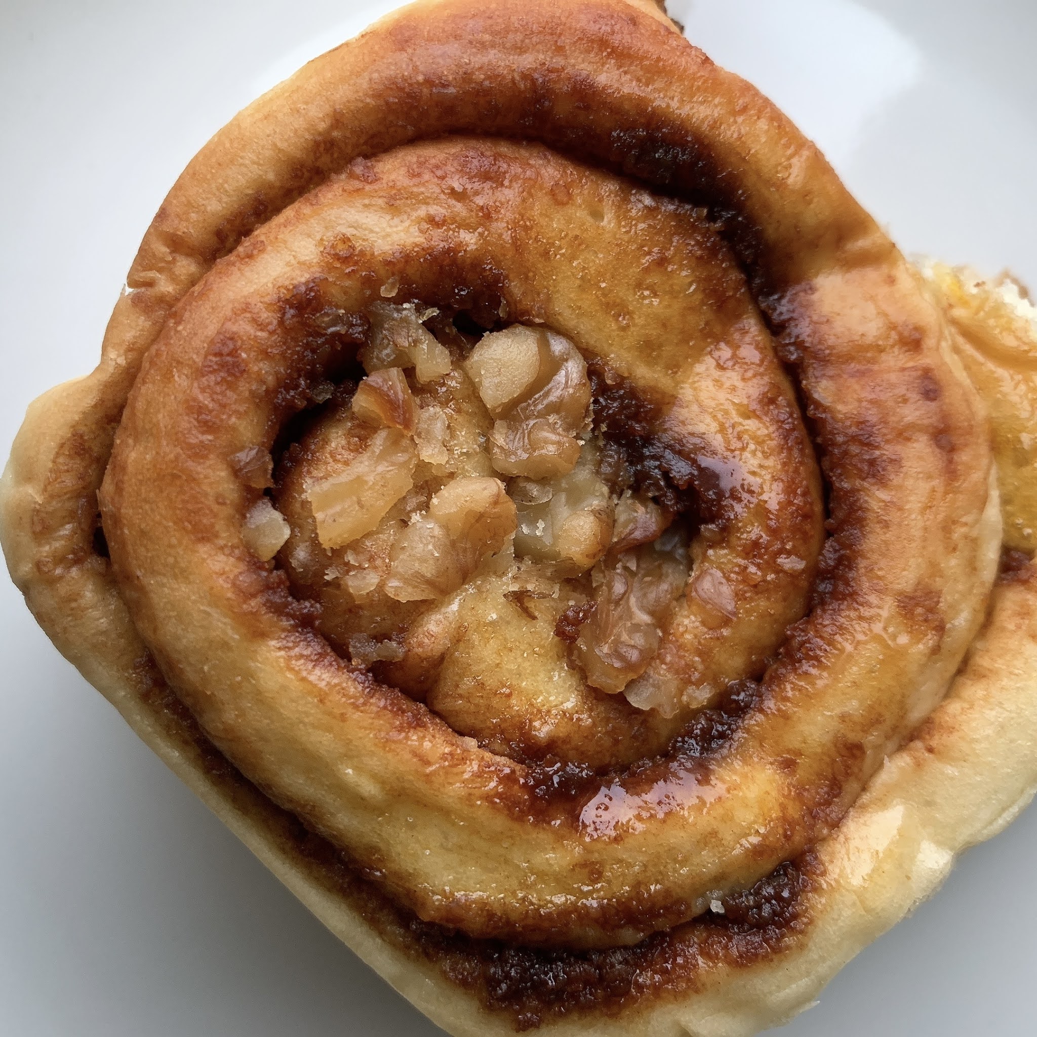 M PAIN肉桂捲用的是黑糖蜜配上微量的肉桂味,還有些許的核桃更能增添咬勁和味道。