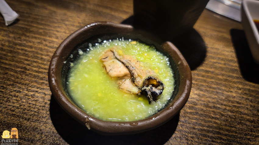 這個鮮蚵還蠻大顆的,搭配帶有酸酸甜甜加上芥末的綠醬