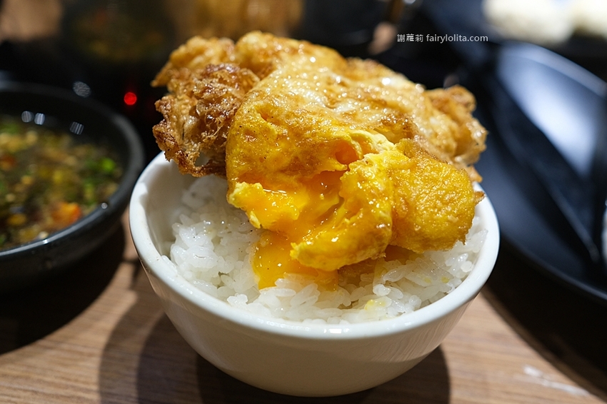 除了海鮮、肉品,還有一個我也超推薦你們點,就是這個加點的麻油炸蛋。