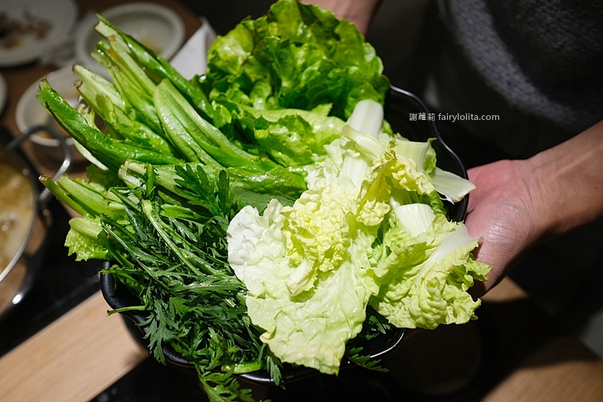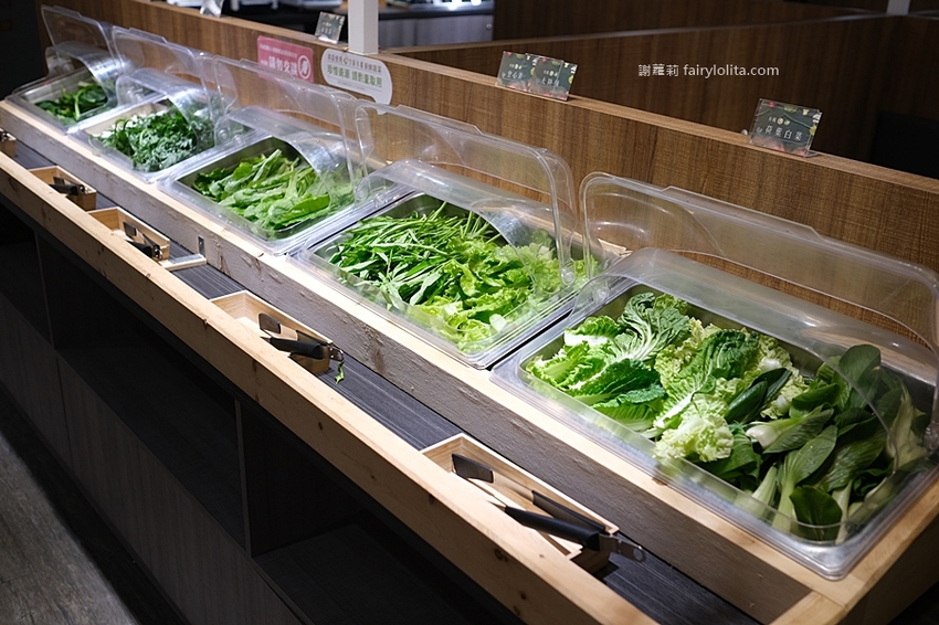 不要看它整排綠油油,食材光是數一下就足足有10種這麼多,而且只要點鍋物就可以免費吃到飽,真的有夠划算的啦!聽店員說,每天提供的種類還不太一樣,這部份都會依照產季而更換,都可以讓你吃到這季節最新鮮的蔬菜。