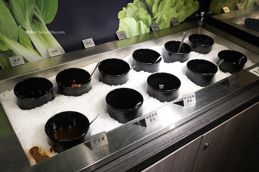 自助吧還附有醬汁檯,光是選擇超過10種以上,常見的蔥、辣椒、蒜泥、醬油、醋、蘿蔔泥這裡通通有,而且還有一些比較特殊的醬汁,像是胡麻醬,這個沾肉超合適。