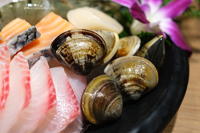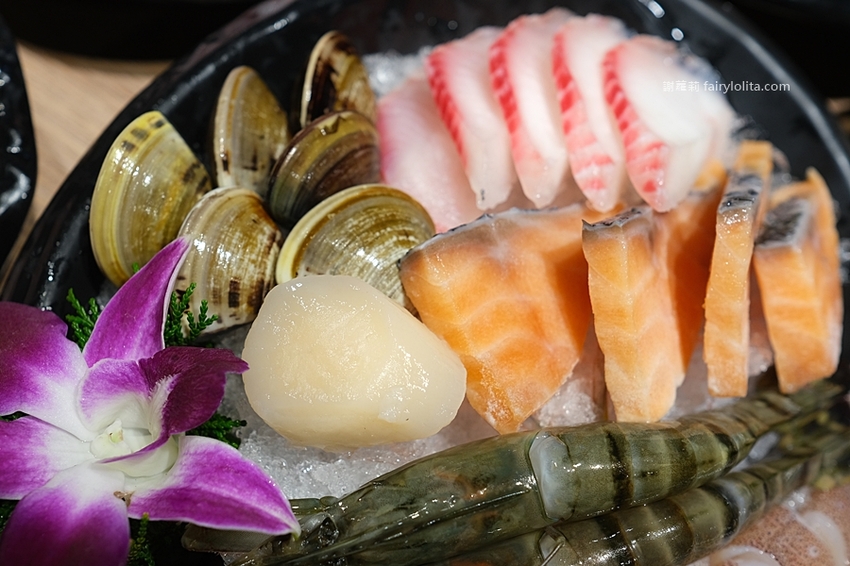 裡面的海鮮選擇也是不少,有抽透、大白蝦、鮭魚、鯛魚、蛤蠣及生食級干貝,這個依舊是海鮮控的最愛,聽店員說,這個的點閱率可是相當高呦!