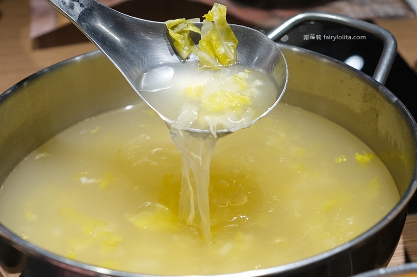 這個「東北酸菜(NT.38元)」可是這裡的超級人氣招牌,不少主顧客來這裡可都是為了它,特別值得一提的是,就連酸菜也是有機葉,喝起來酸酸甜甜、尾韻還有一點回甘,不管是都肉亦或的海鮮,都會帶有一點點酸白菜的風味。